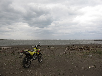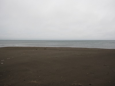 国道231号を右折。石狩川の堤防上の道を走り、樹林を走り抜け、石狩川の河口まで行く。アドレスを止めると、人影のまったくない石狩川河口の砂浜を歩くのだった。